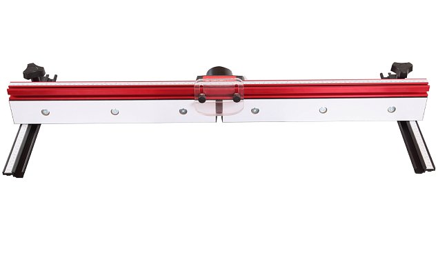 В комплекте с упором имеются направляющие с регулируемыми шкалами для точного позиционирования (для транспортировки они закреплены болтами на задней части упора). Они устанавливаются по бокам фрезерного стола длиной 800 мм (например, рабочий стол RT800 имеет параметры 800×600 мм). Но упор можно закрепить и другим способом. Для этого на нижней части основания упора сзади имеются два паза 110×10 мм каждый (расстояние между пазами - 628 мм). Кроме того, низ упора имеют шесть силиконовых накладок для плавного перемещения.