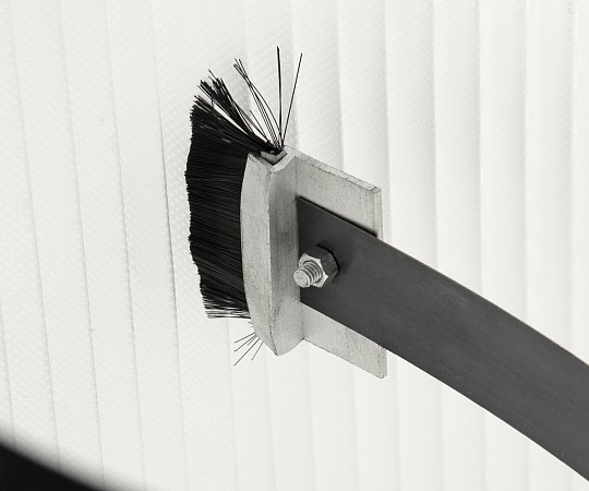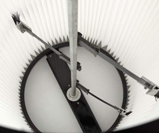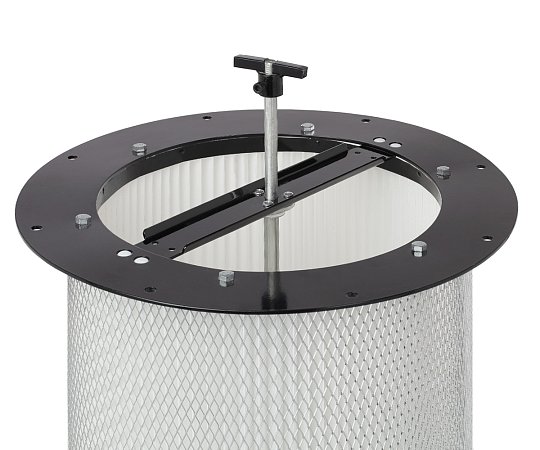 Картридж имеет цилиндрическую форму, с наружной стороны находится металлическая сетка, с внутренней - складчатый фильтр из полиэстера. Верхняя часть фильтра (диаметр 450 мм) изготовлена из стали имеет восемь сквозных отверстий диаметром 9 мм для крепление к корпусу вытяжной установки. Нижняя часть оснащена резиновым манжетом под установку стружкосборника. Наружный диаметр манжета - 380 мм. На нём предусмотрен паз (высота 16 мм) под зажим мешка. Внутри (по центру) находится ось (шток) на которой расположены четыре лопатки с щетками на концах для стряхивания отходов со складок фильтрующего элемента.