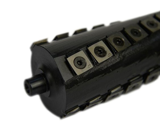 Вставки заточены с четырех сторон, их можно переворачивать при необходимости. Они не подлежат перезатачиванию, но возможна замена после затупления со всех сторон. В результате и срок службы и чистота обработки у валов Helical существенно больше, чем у стандартного вала с 3-мя или 4-мя ножами.