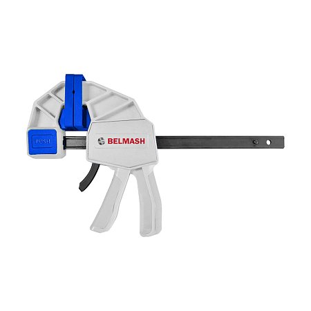 Струбцина пистолетная быстрозажимная BELMASH QC150M - сегмент стандарт. Назначение - используется для фиксации, сжатия и распора всевозможных заготовок и деталей во время работы, закрепления на столярном верстаке или станке.