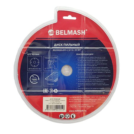 Диск пильный по ламинату BELMASH 210x2,6/1,6x30мм 80T