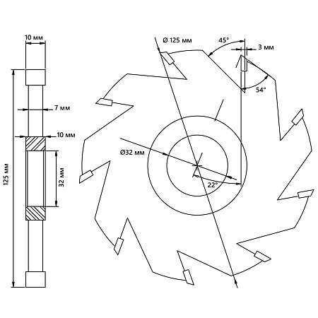 Фреза пазовая BELMASH с подрезающими зубьями 125х32х10 мм