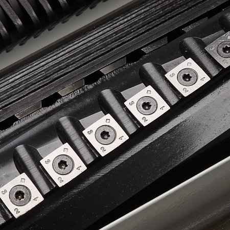 Каждый нож имеет четыре рабочих лезвия. Угол заточки 60 град. При затуплении кромки, нож можно повернуть.