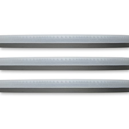 Имеет основу из пружинной стали. Зубья изготовлены из быстрорежущей стали М42, закалены до твердости 67-69 HRC. Зубья расположены с переменным шагом 6/10TPI.