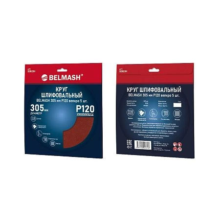 Круг шлифовальный BELMASH 305 мм Р120 велкро 5 шт.