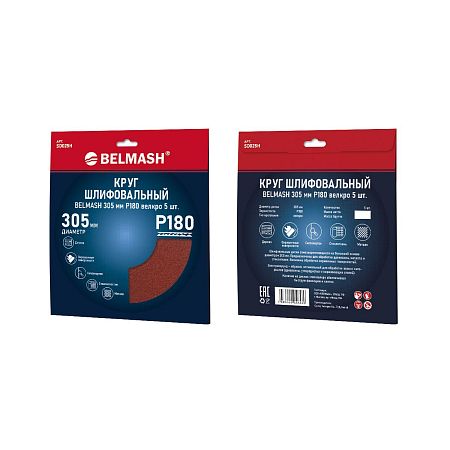 Круг шлифовальный BELMASH 305 мм Р180 велкро 5 шт.