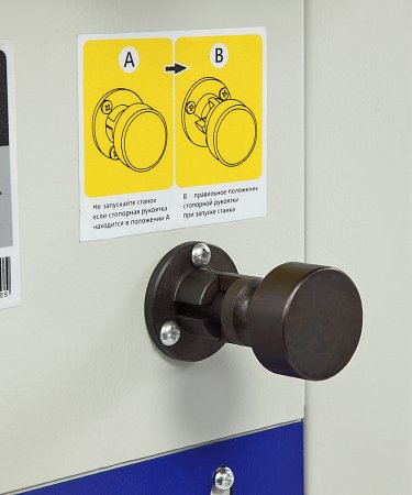 Быстрое обесточивание станка при помощи кнопки экстренного отключения.
