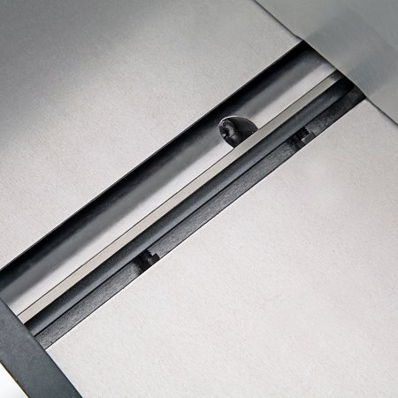 Рабочие столы длиной 1122 мм выполнены из высококачественного чугуна, который обеспечивает легкое скольжение заготовки, качественную обработку и снижение вибрации. Отдельного внимания заслуживает удобный эксцентриковый механизм регулировки положения столов, причем как подающего, так и принимающего.