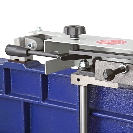 Рабочие столы длиной 1295 мм выполнены из высококачественного чугуна, который обеспечивает легкое скольжение заготовки, качественную обработку и снижение вибрации. Отдельного внимания заслуживает удобный эксцентриковый механизм регулировки положения столов, причем как подающего, так и принимающего.