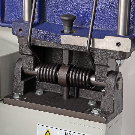 Скорость автоподачи заготовки 7 м/мин. Механизм протяжки классический: стальной подающий ролик, приемный с резиновым покрытием, а также когтевая защита, которая предотвращает обратный выброс заготовки. Настройка высоты происходит путем вращения штурвала, шкалы на боковой стенке и механического индикатора на штурвале.