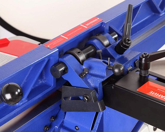 Основные узлы станка, такие как приемный и подающий стол, параллельный упор, изготовлены из чугуна.