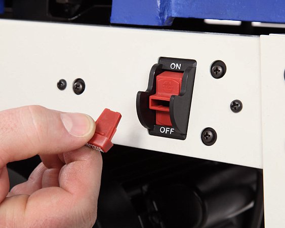 - Защита от детей, выключатель оборудован специальной съемной вставкой, без нее станок не включится