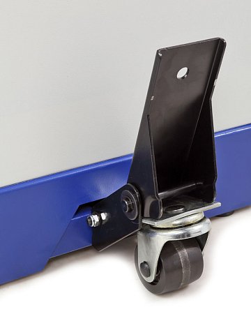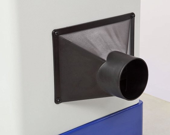 На стальном корпусе размещен патрубок (102 мм) для подключения системы аспирации. В нижней части основания установлена колесная система, которая позволяет перемещать массивный станок по мастерской.