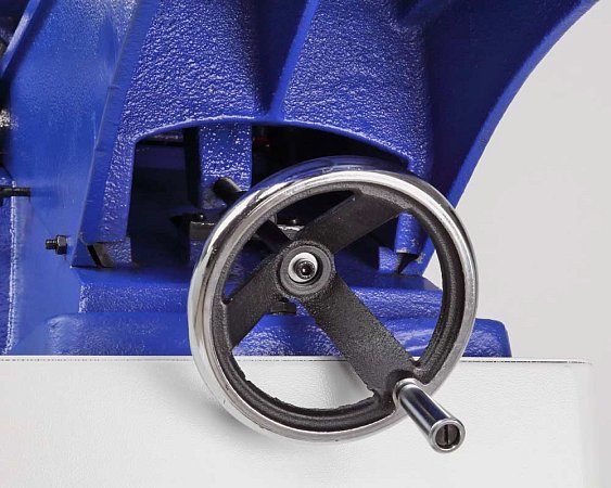 Механизм настройки положения параллельного упора позволяет регулировать угол наклона последнего от -45 до + 45 градусов. Перемещение параллельного упора как и регулировка высоты рабочих столов осуществляется вращением маховиков.