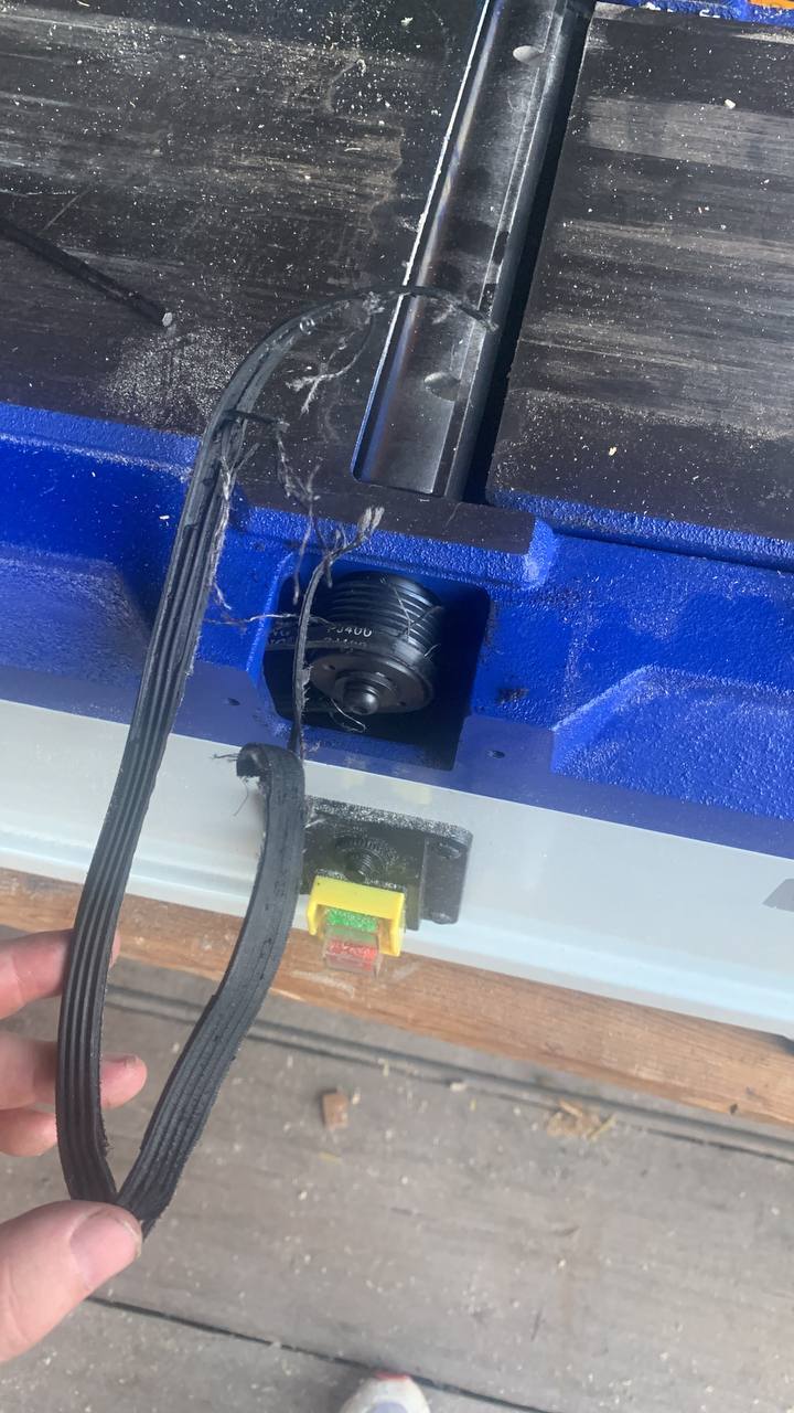 Какое же было мое удивление и разочарование , когда после 10 мин прерывной работы новый только из упаковки станок перестал работать, перестал крутиться вал ( на фото ниже порвался ремень )