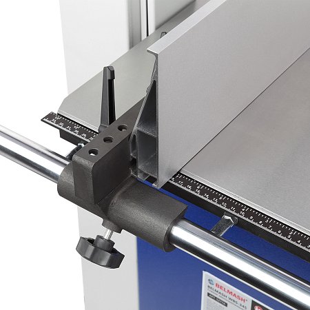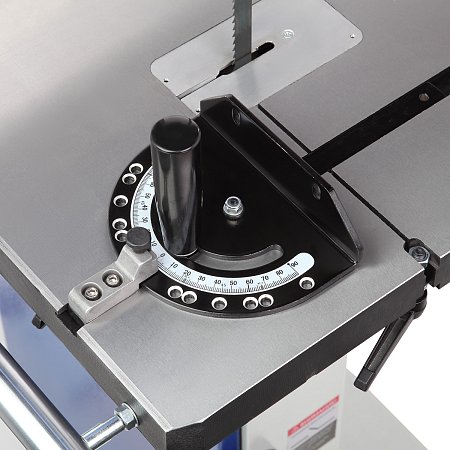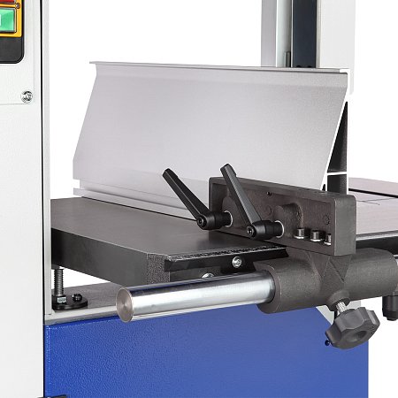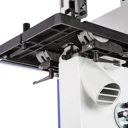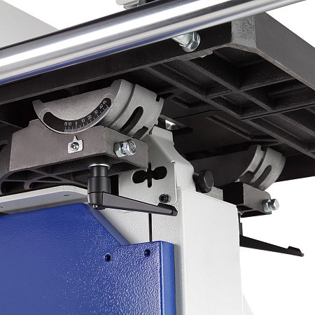 Для позиционирования заготовок станок комплектуется двумя упорами. Массивный параллельный упор из алюминиевого профиля, который имеет два положения по высоте для работы с деталями разной толщины. А также угловым упором с диапазоном настройки от -90° до +90°, он позволяет выполнять как продольные, так и поперечные резы с высокой точностью.