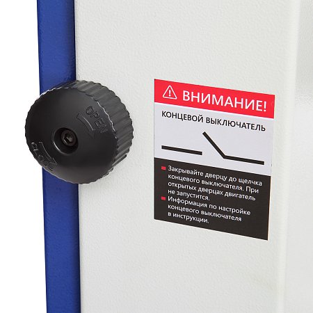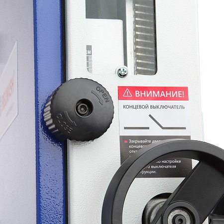 Сердцем станка является мощный асинхронный двигатель на 1800 Вт, S1, который поддерживает стабильные обороты и температуру при длительной работе. Концевой выключатель блокирует запуск двигателя при открытых защитных панелях, обеспечивая безопасность оператора и предотвращая случайный пуск станка.