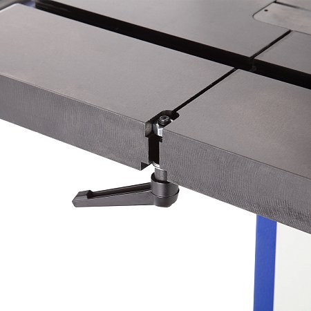 Рабочий стол из литого чугуна размером 546x407 мм обеспечивает виброустойчивость. Его регулируемый угол наклона в диапазоне от -7° до +45° открывает широкие возможности для выполнения сложных угловых пропилов.