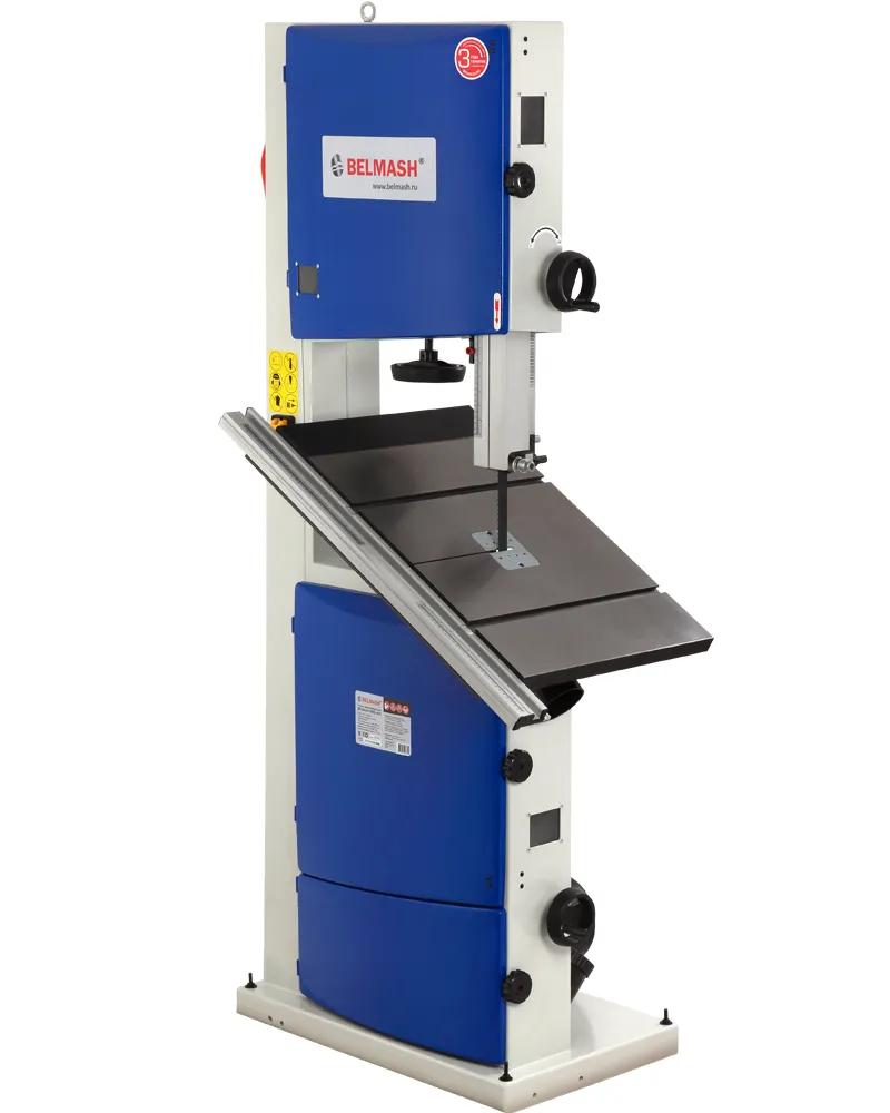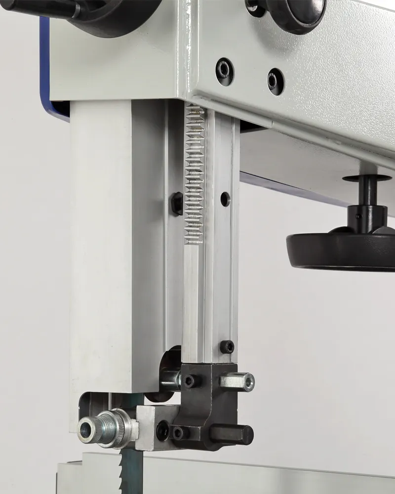 На станке используются пильные полотна длиной 3345 мм и шириной от 9,5 до 37 мм, что позволяет осуществлять как прямолинейный, так и фигурный распил. Ослабление натяжения полотна осуществляется специальным рычагом в одно движение. На правой части рамы, сверху и снизу расположены смотровые окна для отслеживания расположения пильного полотна на шкивах. Шкивы (маховики) выполнены из чугуна, диаметр 420 мм.