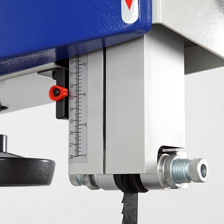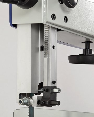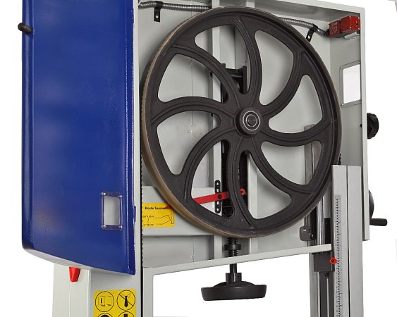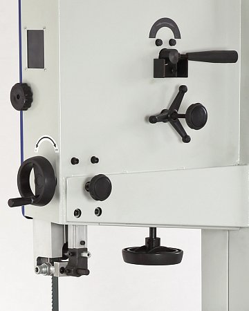 На станке используются пильные полотна длиной 3345 мм и шириной от 9,5 до 37 мм, что позволяет осуществлять как прямолинейный, так и фигурный распил. Ослабление натяжения полотна осуществляется специальным рычагом в одно движение. На правой части рамы, сверху и снизу расположены смотровые окна для отслеживания расположения пильного полотна на шкивах. Шкивы (маховики) выполнены из чугуна, диаметр 420 мм.