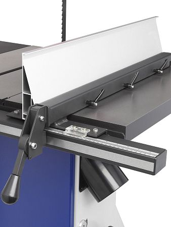 Для точного позиционирования заготовок станок комплектуется литым алюминиевым параллельным упором, который перемещается по передней направляющей и устанавливается как справа, так и слева от пильного полотна. Также он может устанавливаться как вертикально, так и горизонтально, в зависимости от высоты заготовки.