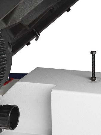 Удобный механизм сброса и натяжения пильного полотна упрощает подготовку станка к завершению и началу работы
