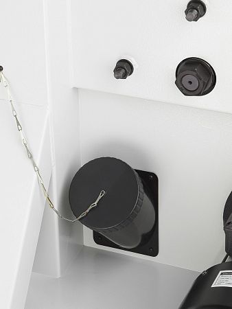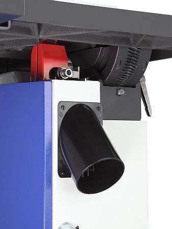 Для подключения аспирации станок оборудован двумя патрубками диаметром 120 мм, расположенными под рабочим столом и в нижней части основания станка. Нижний патрубок имеют крышку.