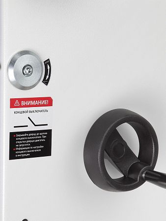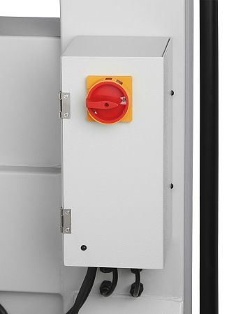 Сердцем станка является мощный асинхронный двигатель на 5 500 Вт, рассчитанный на длительную работу в режиме S1. Питание осуществляется через электромагнитный контактор, это подключение является эффективным и максимально безопасным. Также на станке установлены аварийная кнопка остановки двигателя и система блокировки с концевыми выключателями, которые предотвращают запуск при открытых защитных панелях.