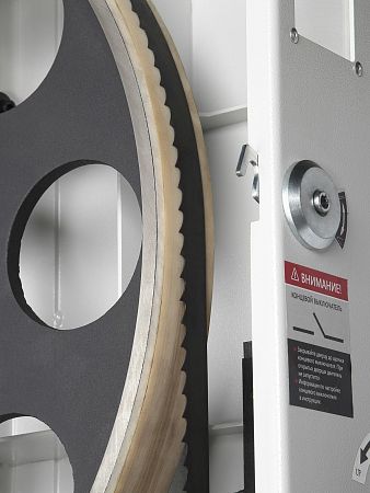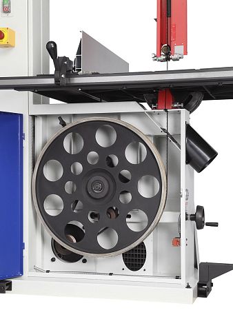 Массивные дополнительные опоры, литые чугунные шкивы диаметром 810 мм и рабочий стол обеспечивают виброустойчивость для чистого и точного реза