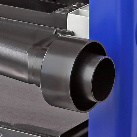 Для отвода отходов резания предусмотрен кожух, который имеет патрубок отвода стружки 53 мм. Его направление при установке может быть как в правую, так и в левую сторону. На патрубок надевается универсальный адаптер с диаметрами под подключение пылесоса на 63 и 102 мм.