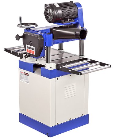 Рабочий стол и основание ножевого вала изготовлены из высококачественного чугуна, что обеспечивает устойчивость и точную работу без вибраций. Глубина реза контролируется поднятием и опусканием основания ножевого вала, максимальная глубина строгания 3 мм. Барашек затяжки надежно фиксирует выставленную высоту. Максимальная высота рейсмусуемой заготовки 152 мм, что позволяет обрабатывать заготовки, поставленные на ребро. Ширина обработки составляет 380 мм.