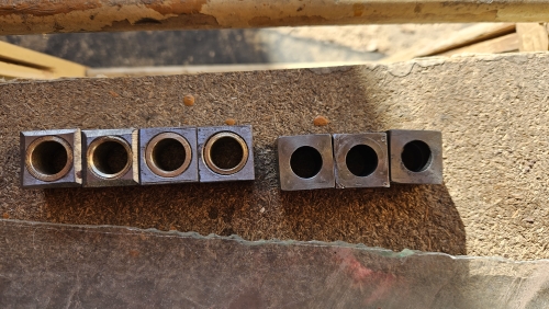 P.S. на фото старого редуктора, не снятого с рейсмуса, видно, что винты крепления находятся над крышкой, вследствие чего редуктор не был полноценно притянут к раме. Для пробы (на будущее) были изготовлены скользящие подшипники для валов с бронзовыми втулками (надеюсь не пригодятся, так как "Белмаш" выслал новые).