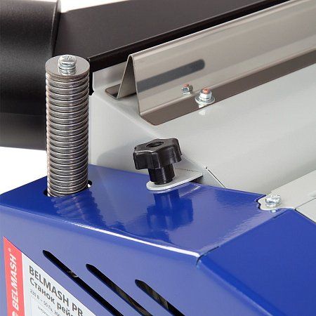 Особенность модели BELMASH PB-2000/330 – режущий блок расположен на четырёх винтовых колоннах из нержавеющей стали. Они обеспечивают возможность максимально точной настройки положения строгального вала над столом. Подъем и опускание режущего блока происходит синхронно и с равномерно-распределенной нагрузкой. Это обеспечивает жесткость конструкции, поглощает рабочие вибрации, увеличивает качество обработки материала.