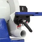 Рабочий стол изготовлен из чугуна, что гарантирует максимальную устойчивость и отсутствие вибраций. Размер стола 200x150 мм, высота над верстаком — 195 мм. Стол имеет гладкую поверхность для лучшего скольжения заготовки и возможность наклона 0-45°