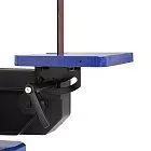Рабочий стол изготовлен из литого алюминия. Наклоняется в диапазоне 0–45° для точного выполнения угловых резов. Стол размером 264×150 мм имеет Т-образный паз для установки углового упора.