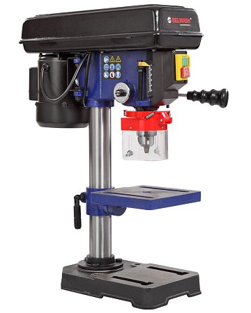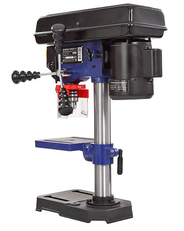 Модель DP200-13 самая компактная и простая. Стол, опора и корпус сверлильной головки выполнены из чугуна, что делает станок устойчивым. При скромных размерах вес составляет 15 кг. Двигатель асинхронный, мощностью 350 Вт.