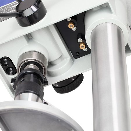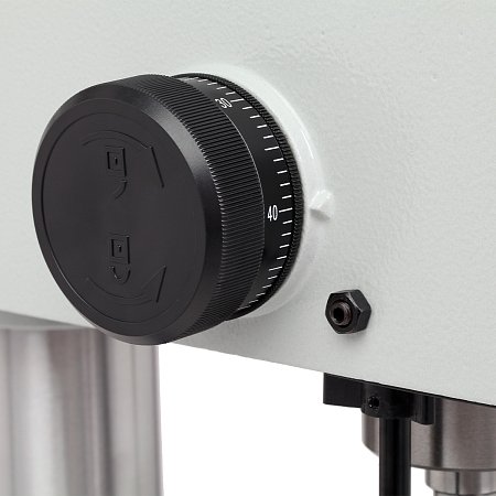 Быстрозажимной патрон с посадкой В16 упрощает смену инструмента диаметром хвостовика 1-16 мм. Ход пиноли 50 мм расширяет возможности обработки.