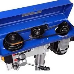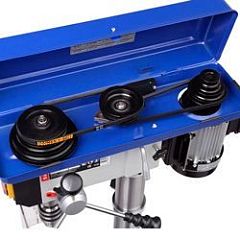 Асинхронный двигатель 600 Вт с ременным приводом обеспечивает стабильный крутящий момент для обработки разных материалов. Имеется 12 ступеней скорости шпинделя от 230 до 2550 об./мин для настройки под различные операции и типы материала. Переключение производится за счет переброски ремня.
