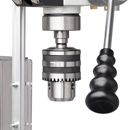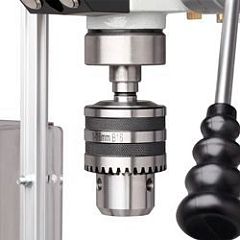 На станке установлен ключевой сверлильный патрон. Диаметр хвостовика, устанавливаемого в патроне инструмента 1-16 мм.