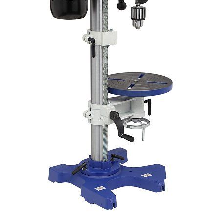 Сверлильный узел. Шпиндель с патроном имеет рабочий ход 80 мм, что позволяет сверлить глубокие отверстия. Точную глубину контролирует шкала с указателем и ограничитель, обеспечивая идентичность глухих отверстий. Ключевой трехкулачковый патрон с посадкой В16 надежно фиксирует свёрла с хвостовиком от 1 до 16 мм.