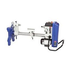 Токарный узел. Станок располагается горизонтально, превращаясь в классический токарный станок по дереву. В шпинделе передней бабки с конусом КМ2 устанавливается поводковый патрон либо фланец с закрепленной заготовкой. В пиноль задней бабки с таким же конусом КМ2 и ходом 40 мм — вращающийся центр. На этом станке можно точить заготовку длиной до 430 мм, диаметром до 280 мм, а при работе с подручником - диаметром до 180 мм, при длине обработки за проход до 150 мм.