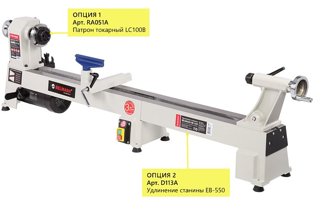 Удлинение станины BELMASH EB-550 позволит увеличить межцентровое расстояние на 550 мм и обрабатывать заготовки более 1 метра (в виде опции).