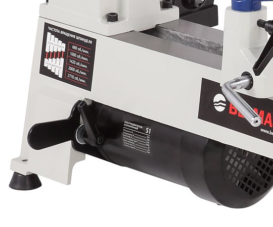 Модель WL-300/535 имеет пять скоростей: 680, 1000, 1420, 2000, 2770 об./мин. Смена частоты вращения достигается посредством переброски ремня