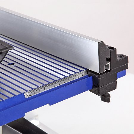 Значительно увеличивает возможности данного инструмента наличие верхнего рабочего стола. Его размер 325×475 мм. На него устанавливается параллельный упор с алюминиевой направляющей длиной 458 мм и высотой 55 мм. Ход упора составляет 160 мм вправо. Для этого имеется соответствующая шкала на передней части верхнего стола. В режиме циркулярного станка вы сможете делать пропилы до 50 мм высотой, высота пропила регулируемая.