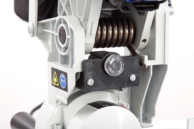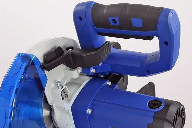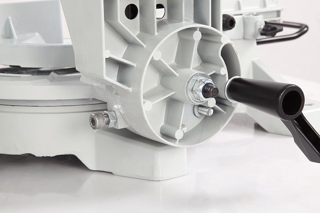 Рукоятка для подъема/опускания пильного узла имеет прорезиненную накладку.