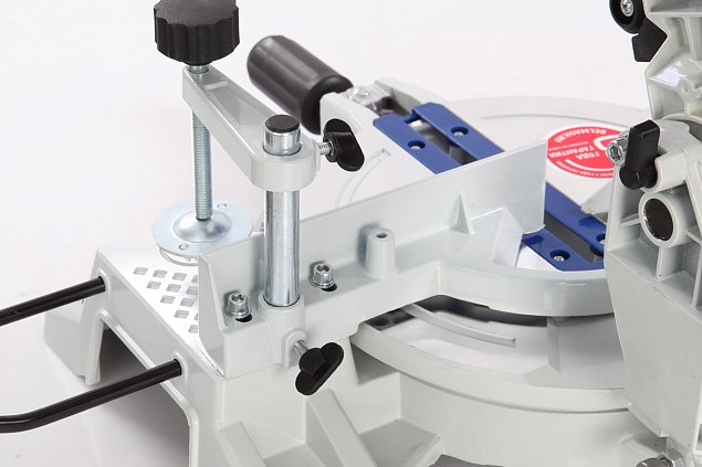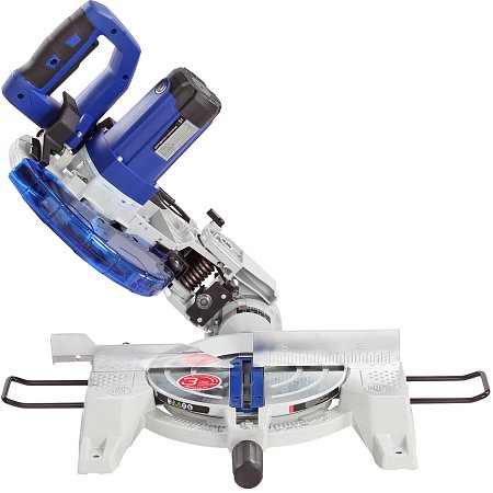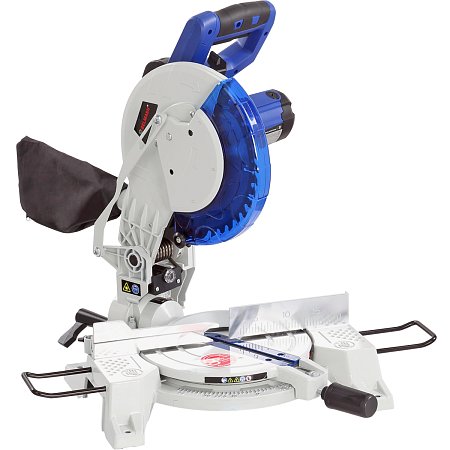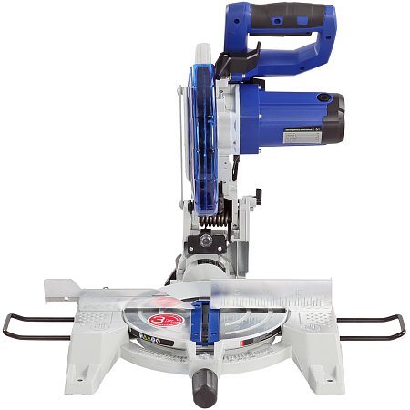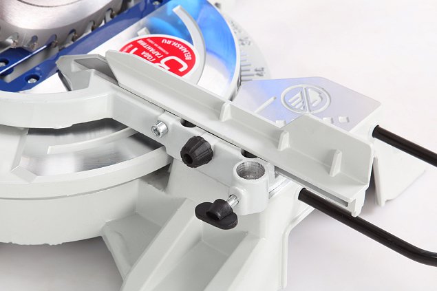 Специальный сплав обеспечивает легкость и прочность конструкции пилы. Режущая головка имеет возможность наклона до 45 градусов влево, защитный кожух закрывается автоматически. Стол поворотный. Для дополнительной точности предусмотрена лазерная направляющая. Замена диска осуществляется после нажатия кнопки блокировки шпинделя.