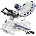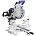 Стол поворотный, имеет два удлинения. Специальный сплав обеспечивает легкость и прочность конструкции. Для дополнительной точности реза предусмотрена лазерная направляющая. В комплекте есть струбцина для фиксации заготовки. Режущая головка с автоматически закрывающимся защитным кожухом. Патрубок для отвода отходов резания позволяет подключить вытяжное устройство.