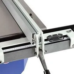 Параллельный упор длиной 1160 мм с быстрозажимным механизмом и двойной измерительной шкалой длиной 400 и 850 мм обеспечивает точное продольное пиление. В зависимости от задачи упор может быть установлен как слева, так и справа от пильного диска. Максимальный размер заготовки от диска до упора, при установке справа, составляет 750 мм.