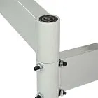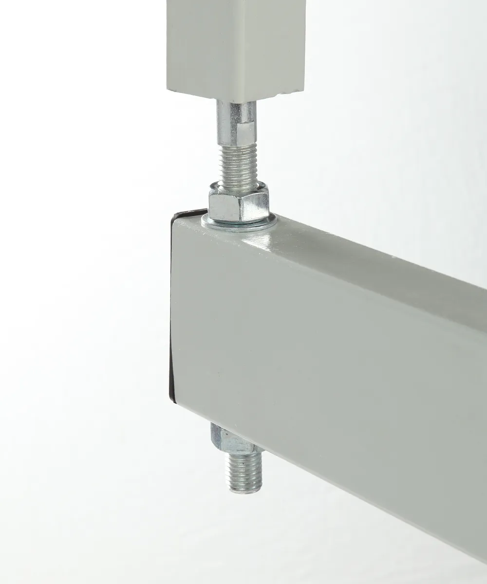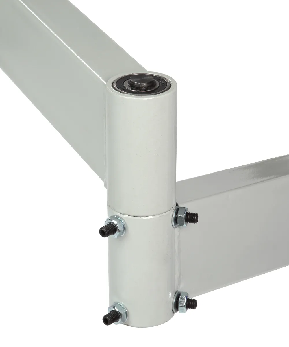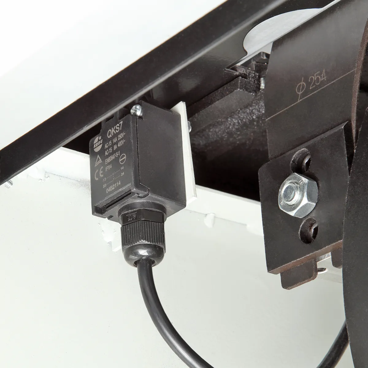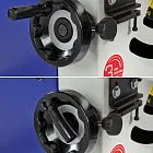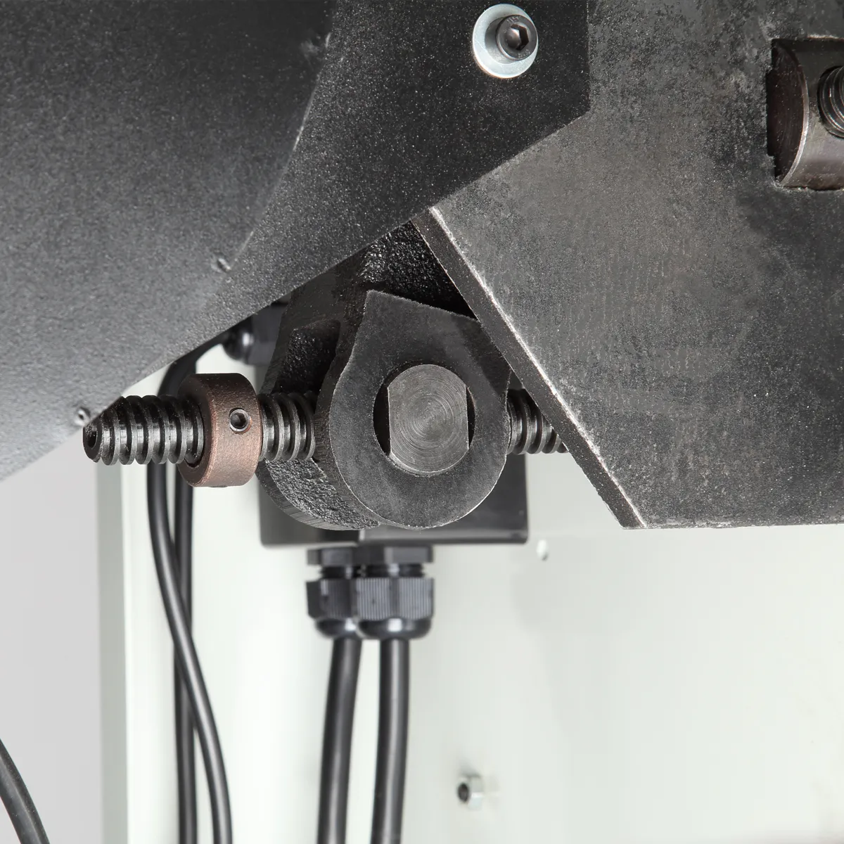 Станок оснащен основным чугунным столом, двумя дополнительными секциями из листовой стали, подвижным столом из алюминиевого профиля и столом поперечного реза из стального профиля. Основной и подвижный столы имеют по одному пазу для установки угловых упоров или дополнительных приспособлений. Конструкция подвижного стола рассчитана на нагрузки. Кронштейн изготовлен из толстостенного стального профиля. Шарнирный механизм выполнен с использованием шариковых подшипников.