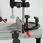 В базовый комплект входят параллельный упор, угловые упоры для подвижного и основного стола, ограничитель, патрубок для отведения стружки, толкатель и зажим эксцентриковый.